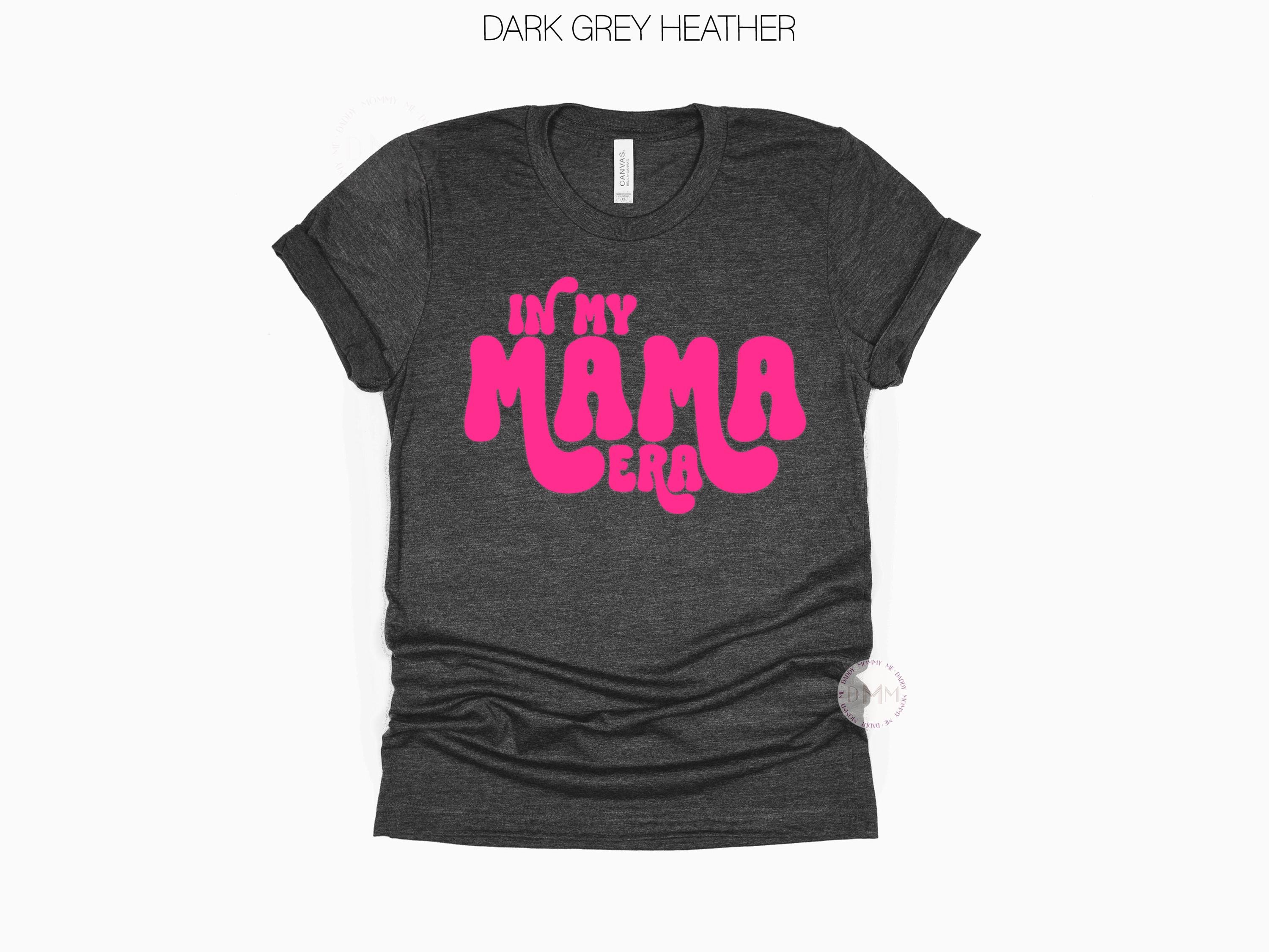 This bold hot pink “In My Mama Era” shirt is made for moms who love a fun, eye-catching look. Printed on a soft heather black Bella Canvas tee, it’s the perfect mix of comfort and statement style.
