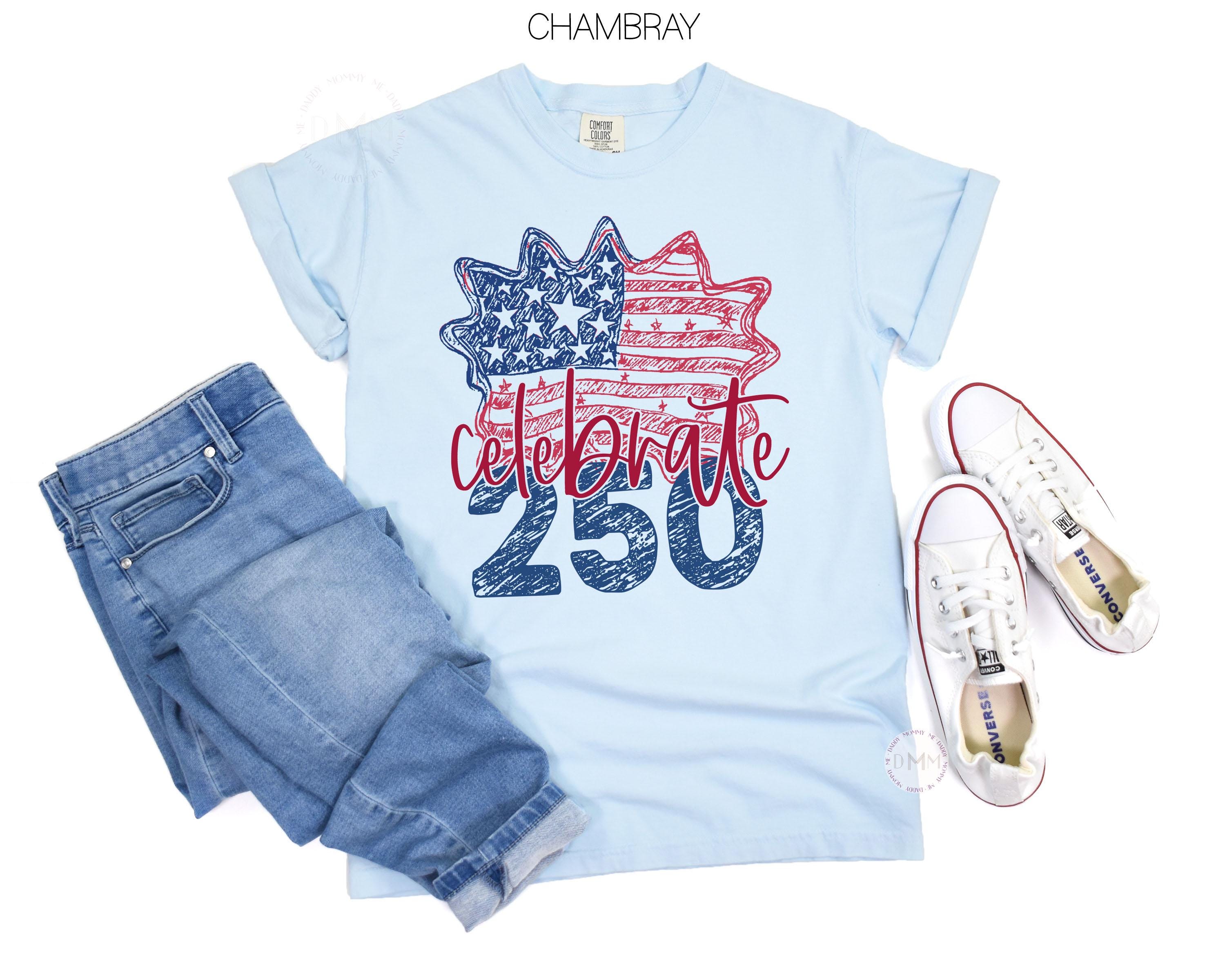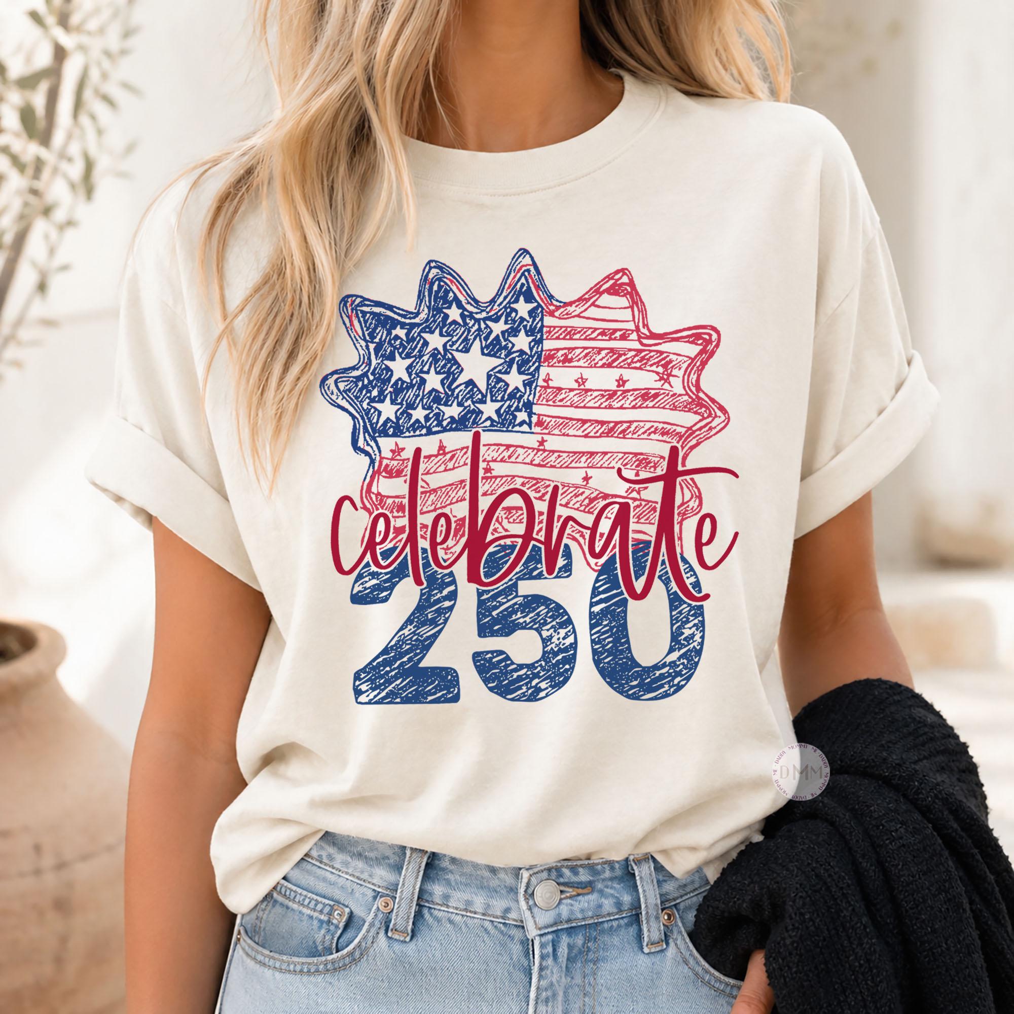 Patriotic Celebrate 250 Shirt, America 250 Tee, 4th of July Shirt Women, USA Flag Shirt, Independence Day Outfit, Red White Blue Tee