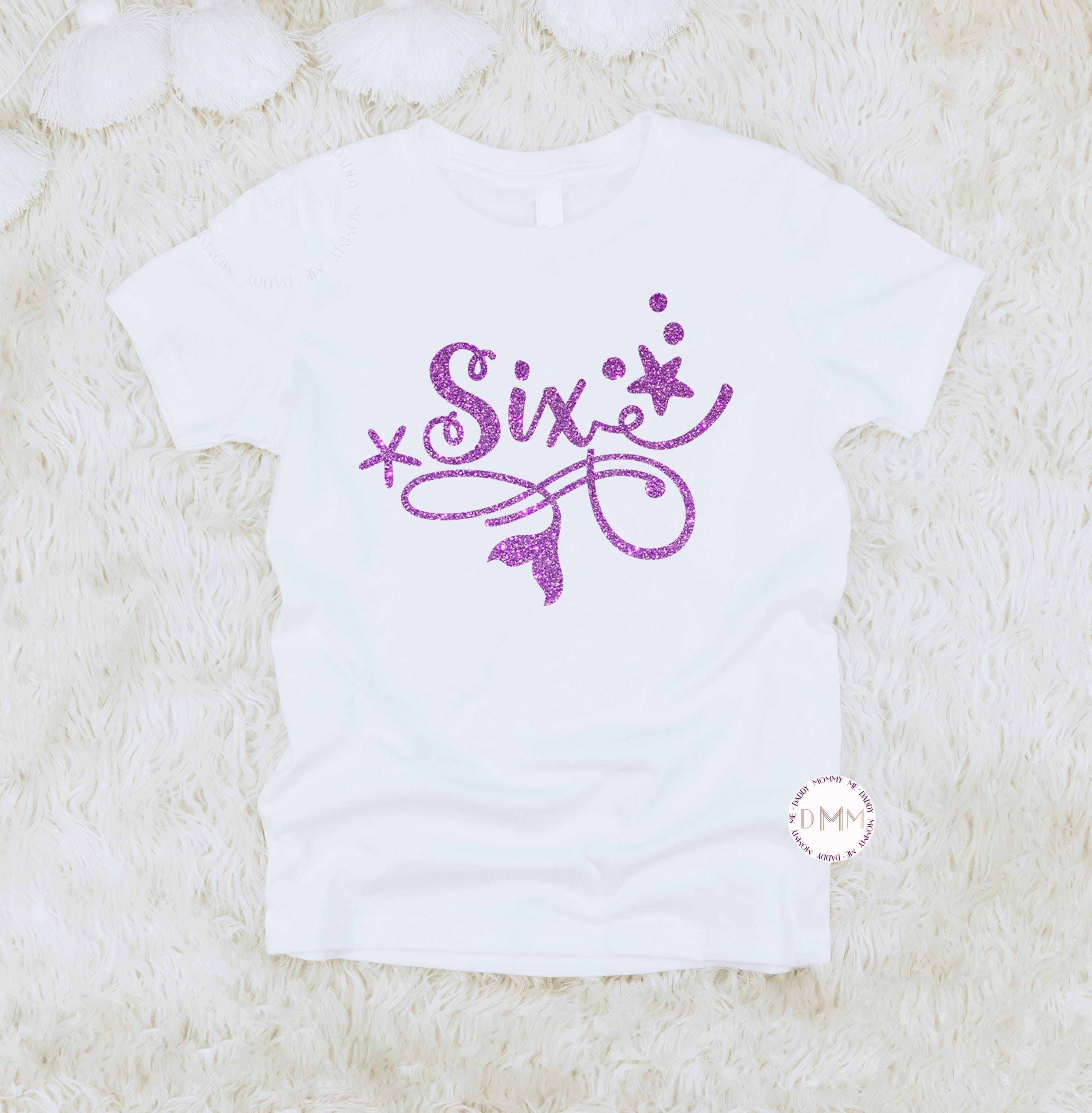 Six Mermaid Birthday Shirt. Glitter design - does not shed.