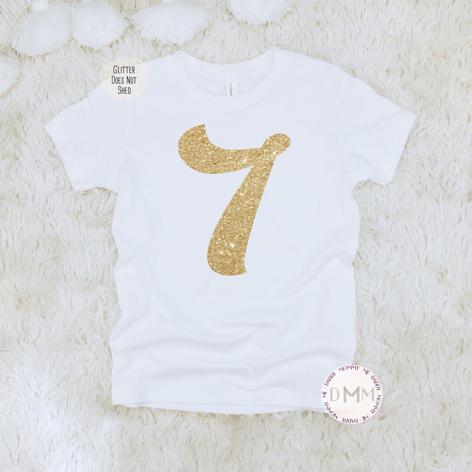 Gold Glitter 7 Birthday Shirt Girl, Seventh Birthday Outfit, Age 7 Shirt, Kids Birthday Tee, 7th Birthday Party Shirt, Girl Birthday Top