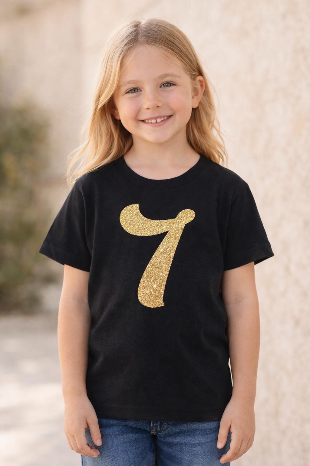 Celebrate your little one turning SEVEN in style with this adorable gold glitter birthday shirt!