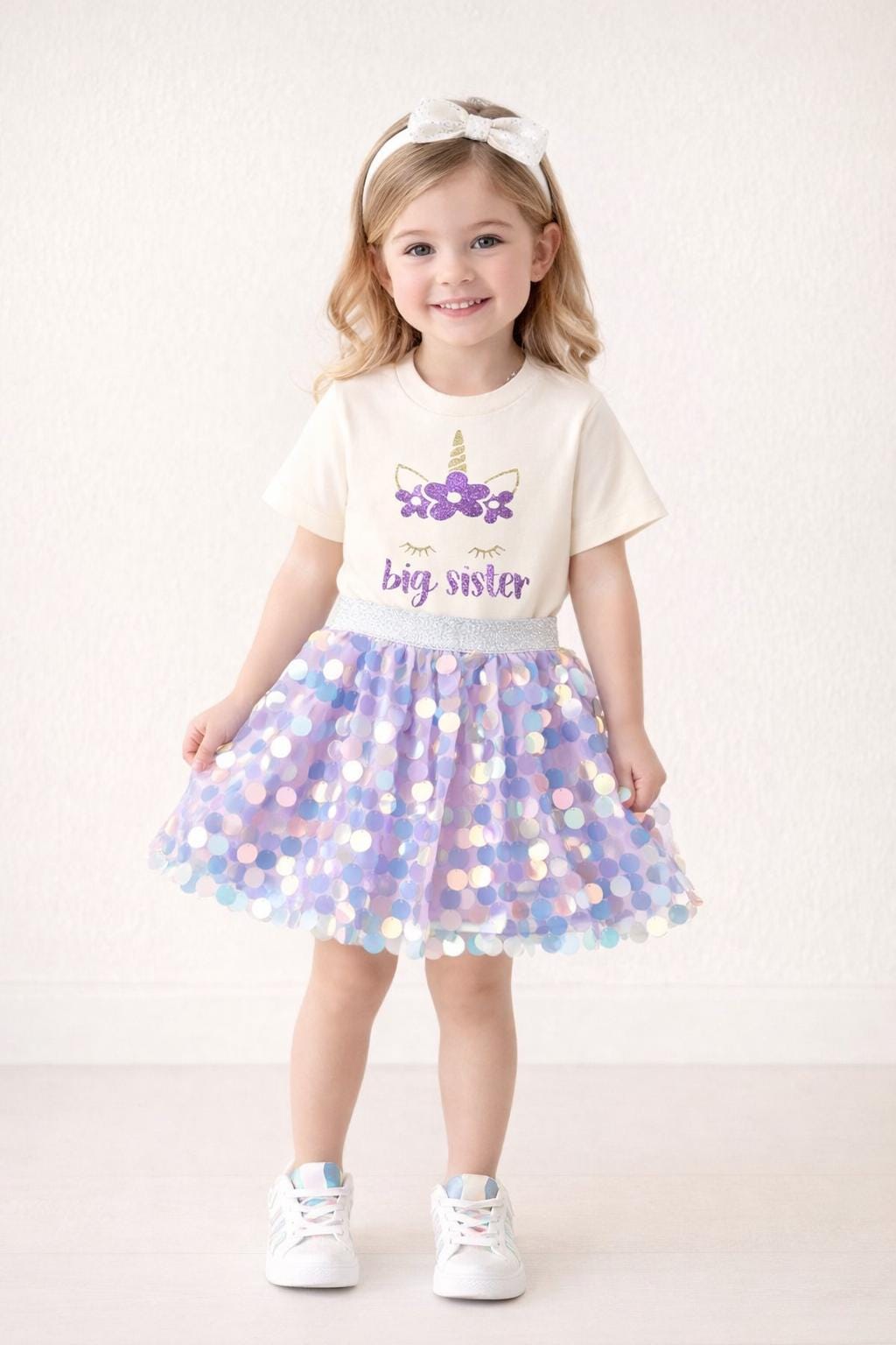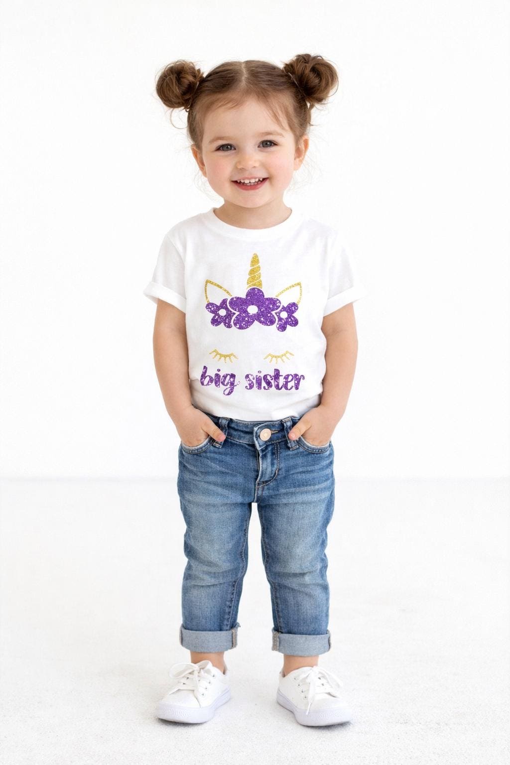 Big Sister Unicorn Shirt – Glitter Unicorn Big Sister Tee, Pregnancy Announcement Shirt, Girls Big Sister Gift, Sibling Reveal Outfit