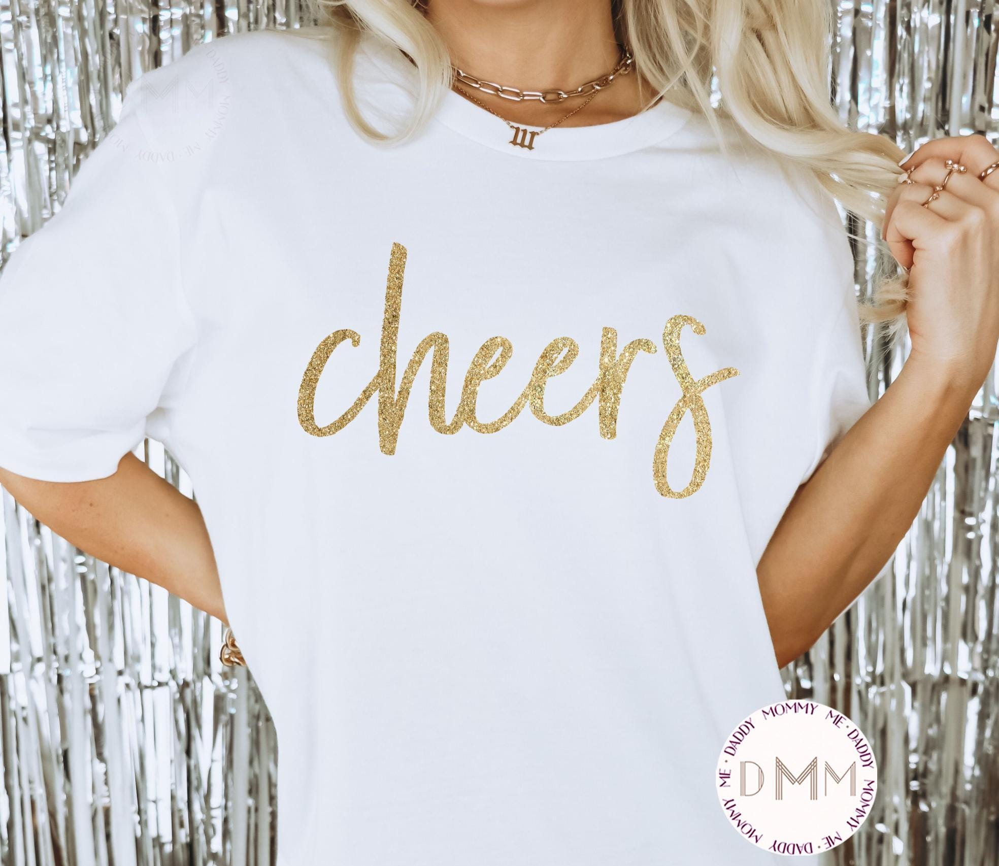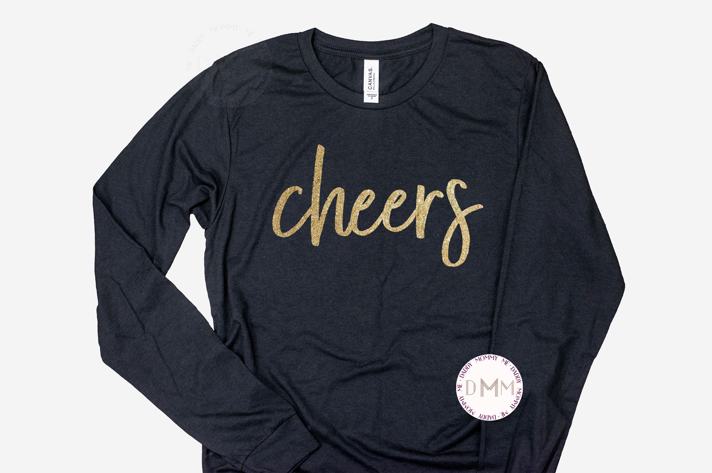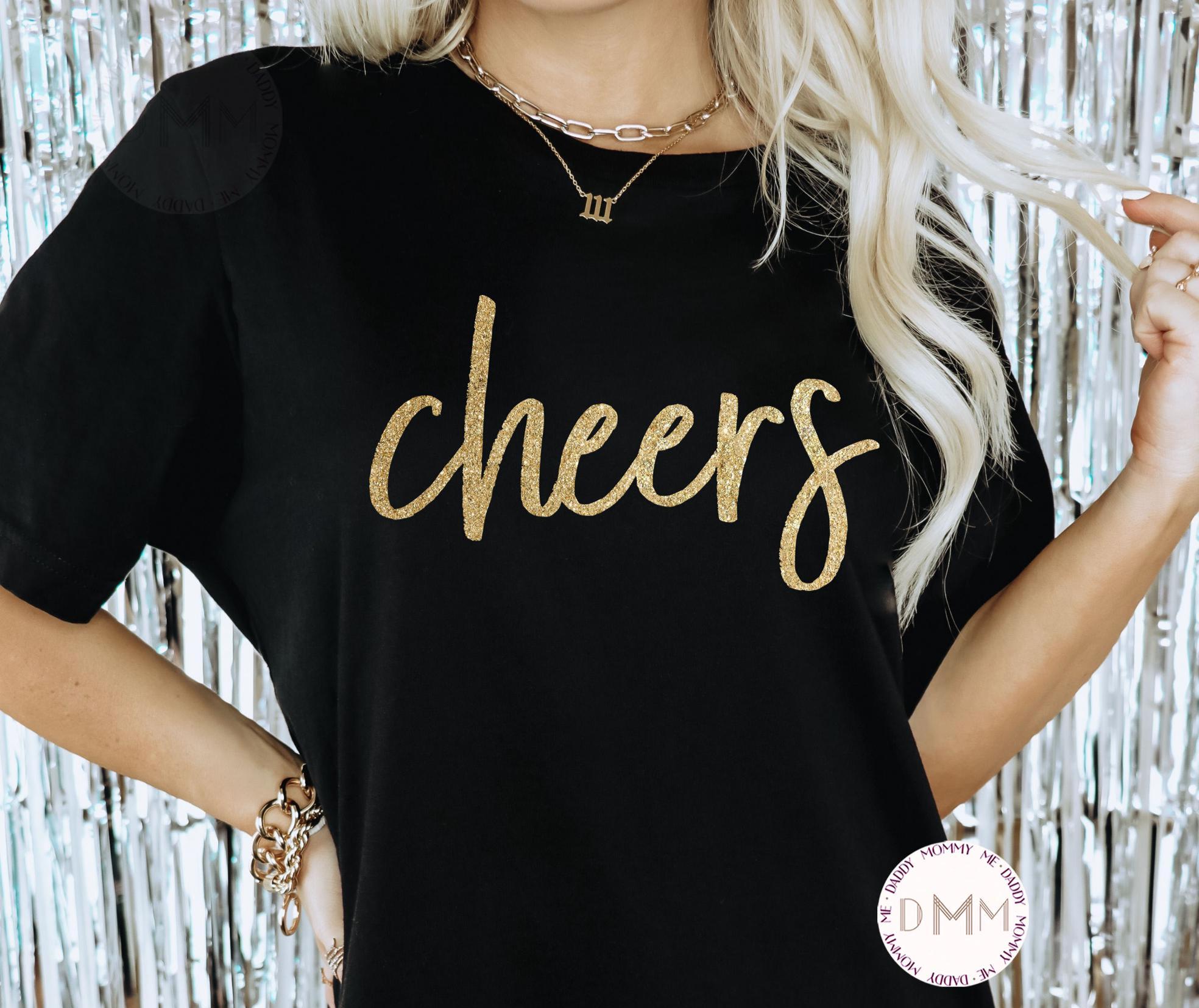 Cheers T-Shirt. Gold Glitter Design. Unisex Shirt.