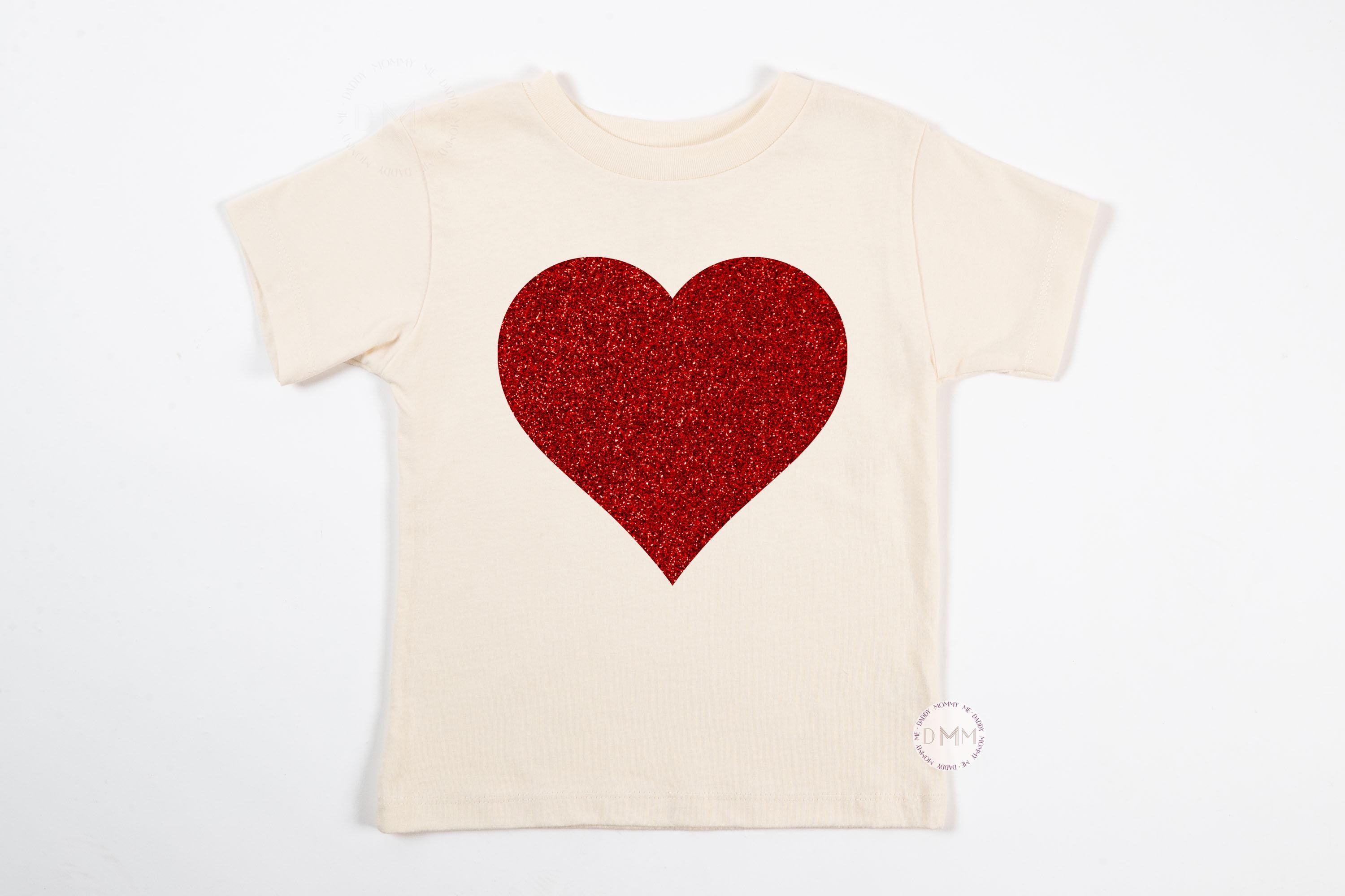Valentines Red Glitter Heart Shirt - Valentine's Day Kid Tee